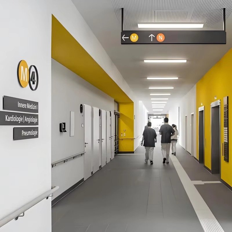 - Overhead Signs: For large, open areas or very long hallways, signs that hang from the ceiling are easier to see over a crowd.